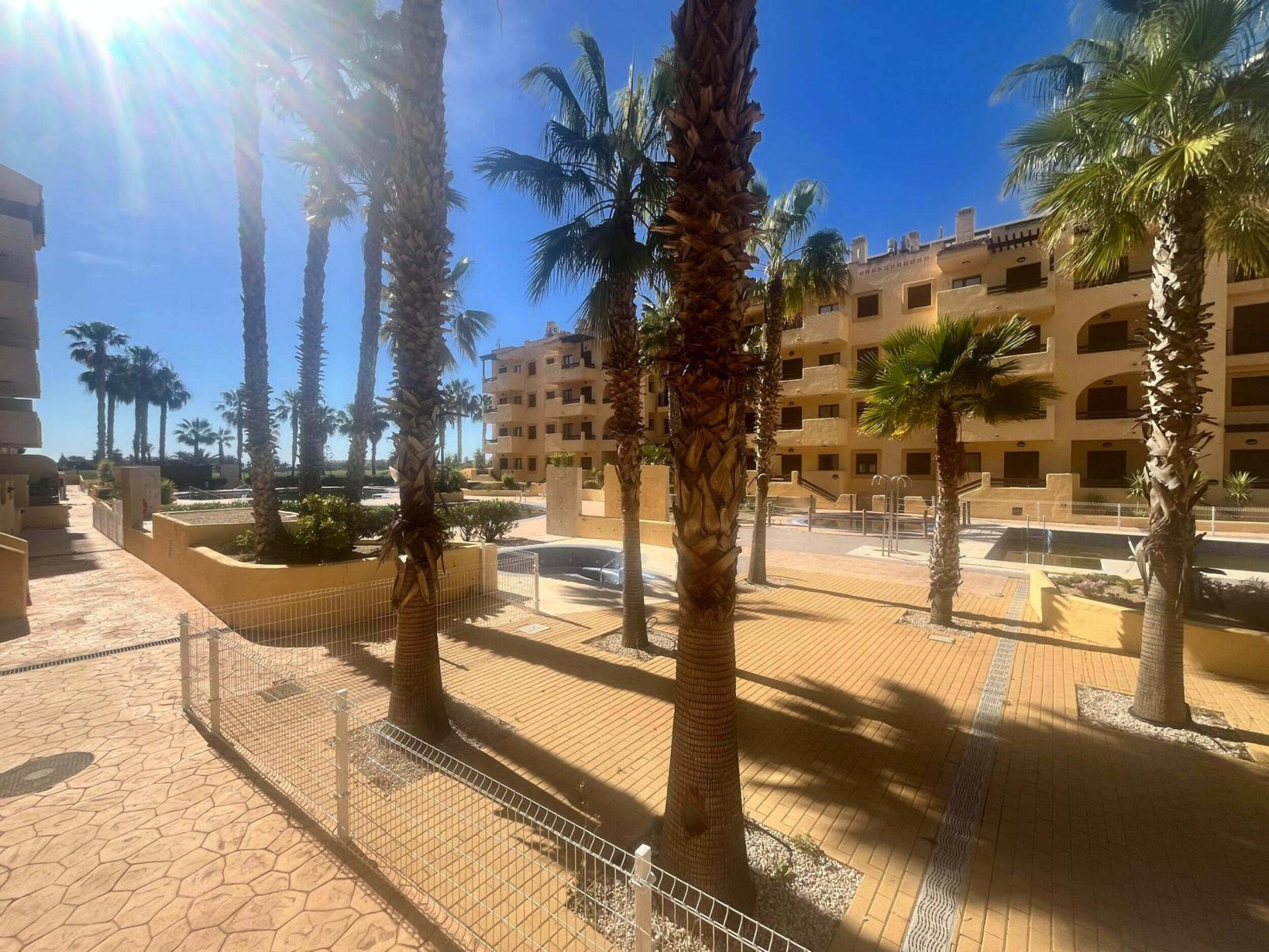 Apartamentos con Licencia Turística a buen precio con piscina comunitaria, jardines y zona de juegos para niños en Los Alcázares