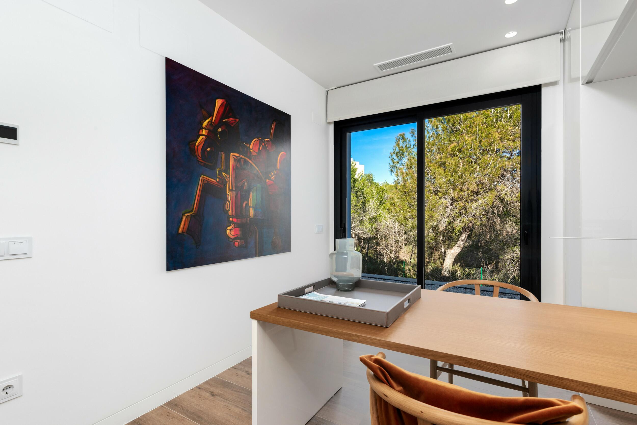 Experimente la vida mediterránea moderna en esta exquisita villa independiente, situada en la codiciada comunidad Granado de Las Colinas Golf & Country Club, España. Rodeada de exuberantes vistas al bosque, esta residencia de 4 dormitorios combina el diseño de vanguardia con la comodidad, ofreciendo el equilibrio ideal entre la elegancia interior y la relajación al aire libre.La villa está equipada con un sistema domótico inteligente, que le permite controlar sin esfuerzo la iluminación, el clima y mucho más.