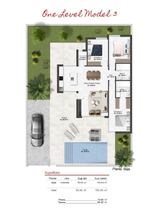 Villas de obra nueva de una sola planta en campo de golf altaona, murcia