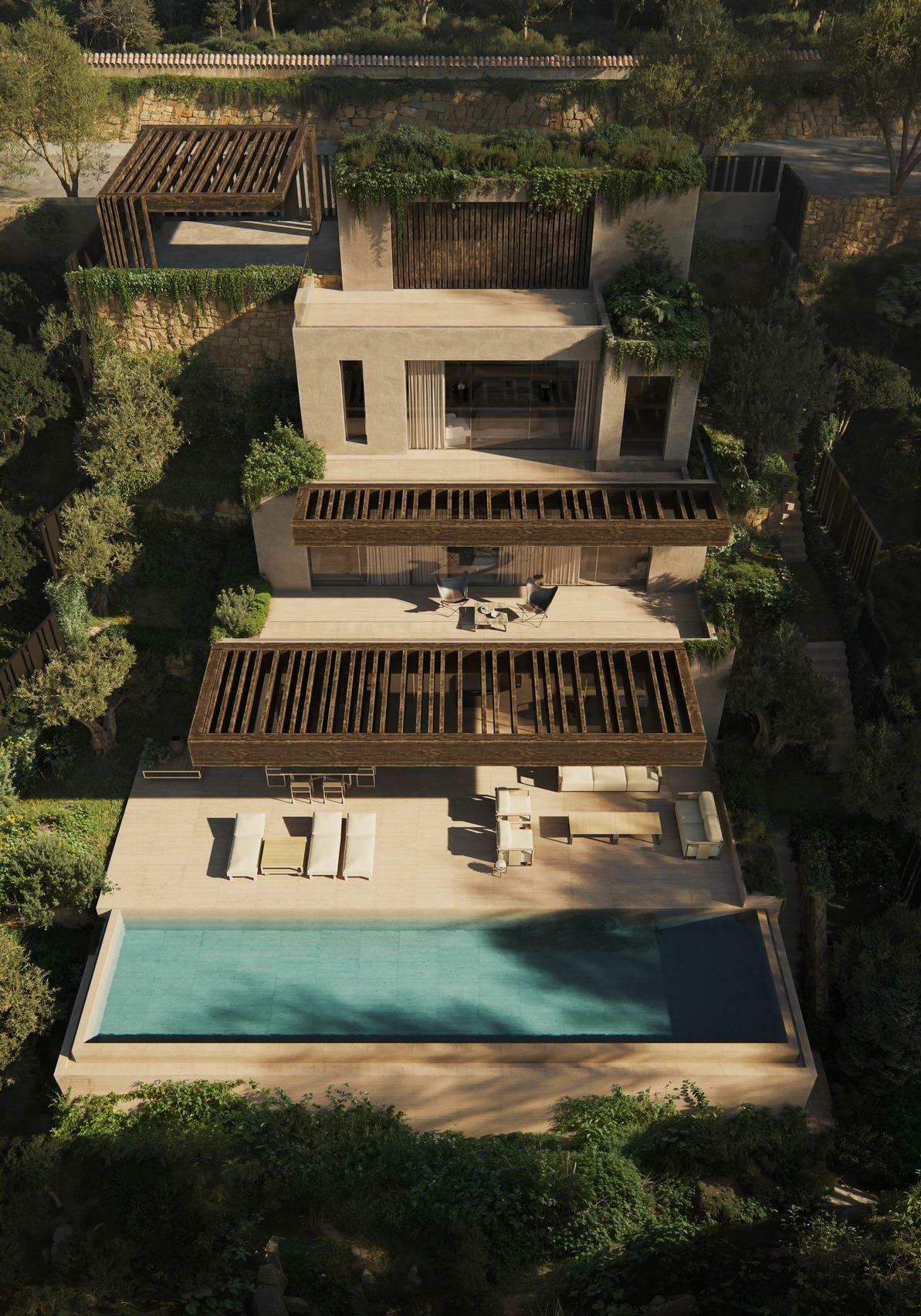 VILLA DE OBRA NUEVA EN BENISSA Villa de obra nueva diseñada para dialogar con su entorno e integrarse en él. Su estructura, a base de plataformas de hormigón y pérgolas de madera, se desliza por la pendiente natural del terreno, creando los espacios habitables interiores. El acceso a la casa se realiza a través de un casetón que ofrece vistas panorámicas de los alrededores. Descendiendo al primer nivel, encontramos el dormitorio principal con su propio vestidor, cuarto de baño y terraza. Una plataforma para un dormitorio en suite con toda la privacidad e intimidad posibles. Bajando más, encontramos otra plataforma con el resto de estancias de la casa. Un total de tres amplios dormitorios con baño en suite y terraza ocupan este espacio. El tercer nivel está ocupado por la zona de día. Dos zonas diferenciadas de salón-comedor y cocina, que pueden unirse separando la puerta corredera que las separa. Dejando un único espacio diáfano que conecta directamente con el exterior a través de cuatro paneles correderos. Un espacio fluido exterior-interior que permite disfrutar de la casa con la brisa y las vistas del exterior. Por último, en el sótano, encontramos un gran espacio de ocio, sala de juegos, TV y bar y una sala de gimnasio. Ambas estancias están inundadas por la luz que entra por las aberturas de la piscina y por las que entra la luz tamizada por el brillo del agua. Una vivienda con acabados excepcionales que le dan calidez y que al mismo tiempo dialogan con la piscina. CONTROL TECNICO Y SEGURO DECENIAL -Seguro de responsabilidad civil por daños estructurales durante 10 años. -Control de calidad de la construcción realizado por un laboratorio de ensayos acreditado. -Control energético realizado por una empresa acreditada. -Control de inspección técnica (OCT) realizado por una empresa acreditada. -Instalación de un sistema de video portero en circuito cerrado con vista panorámica de acceso. EXTERIOR -Piscina infinita. -Muro de delimitación exterior de mampostería y vallado metálico. -Balaustradas de vidrio empotradas en terrazas. -Iluminación empotrada LED en todo el perímetro de la vivienda. -Puerta de acceso al garaje principal motorizada, marca HORMANN o equivalente. -Jardín con arbolado y sistema de riego. -Rampa de acceso y zona de aparcamiento pavimentada con adoquines. FONTANERÍA Y ELECTRICIDAD -Sistema domótico de control de persianas, iluminación de piscina, iluminación exterior y video portero. -Instalaciones eléctricas. -Calefacción por suelo radiante y aire acondicionado por conductos con termostatos independientes en cada estancia, sistema AIRZONE. -Aparatos sanitarios de porcelana blanca, muebles, fregaderos y grifería de ROCA, HANSGROHE y GEBERIT. -Bomba de calor aire-agua de alta eficiencia con conductos de ventilación lineales de marco fino. -Conexiones de teléfono y televisión en todos los dormitorios, salón, cocina y sótano. -Videoportero y sistema de alarma con detectores. COCINA modelo propuesto en el proyecto: -Muebles de cocina con acabado en roble francés. -Nuevo sistema de herrajes Darwin. Herrajes de cajones y armarios modelo arquitecto. -Encimera de cocina en gres porcelánico, LIVING CERAMICS. -Electrodomésticos de alta gama MIELE o equivalente, totalmente integrados, incluyendo horno, microondas, cafetera, lavavajillas, frigorífico, congelador y placa de inducción con extractor integrado con salida al exterior. Benissa es una pintoresca ciudad situada en la provincia de Alicante, conocida por su rica historia, sus paisajes montañosos y su escarpada costa. El casco antiguo de Benissa es especialmente encantador, con estrechas calles empedradas, casas blancas con detalles medievales y monumentos históricos como la Iglesia de la Purísima Xiqueta y la Lonja de Contratación. La arquitectura refleja su pasado árabe y medieval, ofreciendo al visitante un viaje en el tiempo. Además de su patrimonio cultural, Benissa cuenta con un hermoso litoral de aproximadamente 4 kilómetros, conocido por sus calas y playas de aguas cristalinas, como Cala Advocat y Cala Fustera. Estas zonas son ideales para practicar submarinismo, snorkel y otras actividades acuáticas. La localidad también es famosa por sus rutas de senderismo y cicloturismo que recorren tanto la costa como el interior, permitiendo a los visitantes disfrutar de vistas panorámicas del Mediterráneo y de los paisajes rurales. También destaca la gastronomía de Benissa, con platos tradicionales como el arroz a banda, el pulpo seco y los embutidos de la zona.Características principales